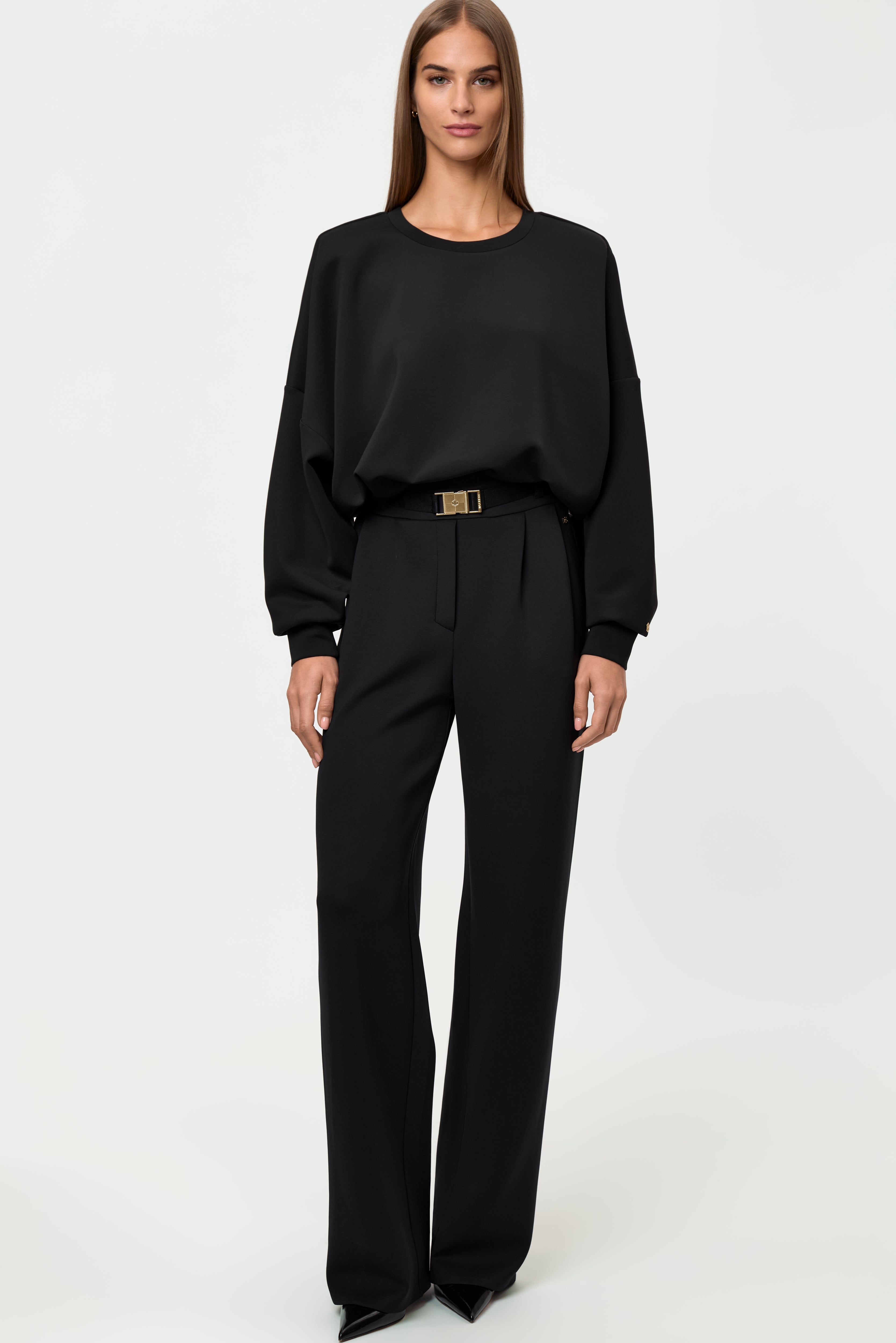 The SICANI Stretch Pants combine comfort and style with their soft feel and beautiful texture. Featuring elegant double pleats at the front, these pants offer a flattering fit and effortless sophistication for any occasion.