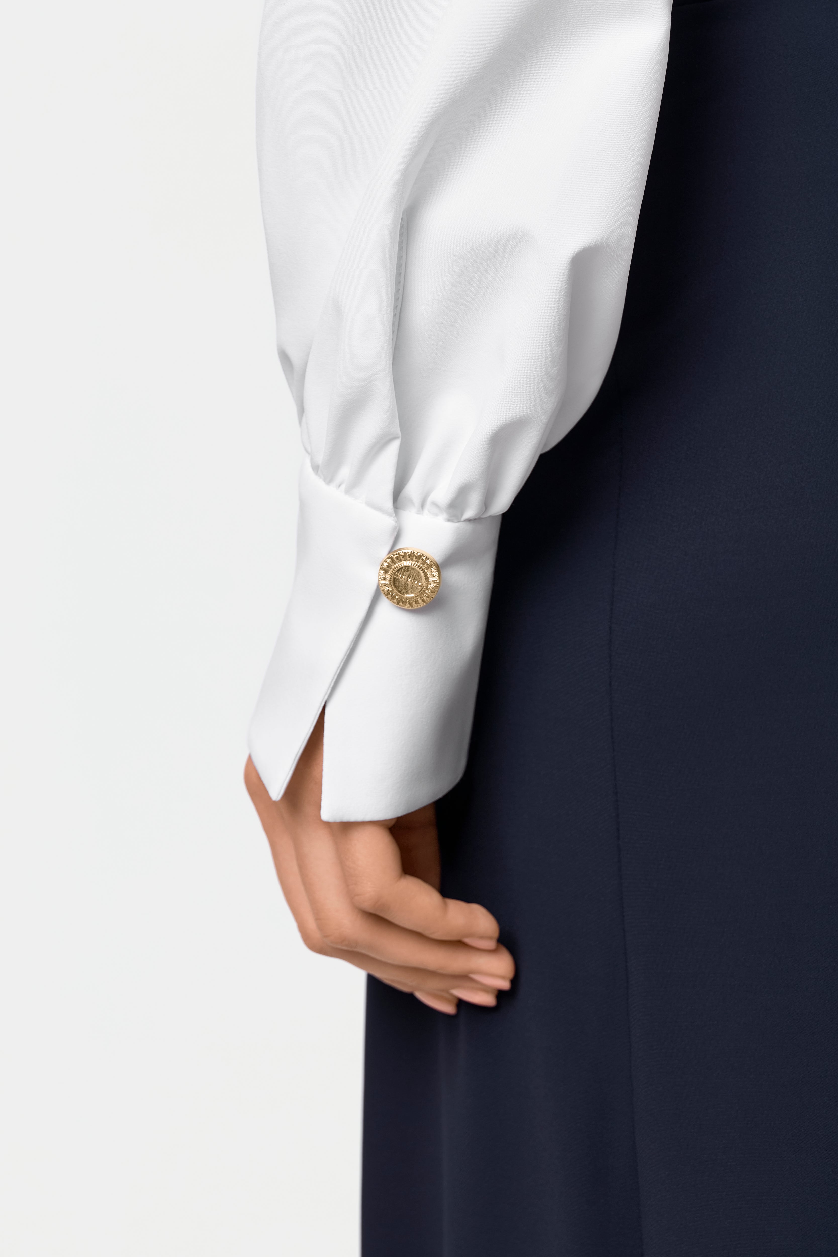 • Cuffs with rounded golden buttons