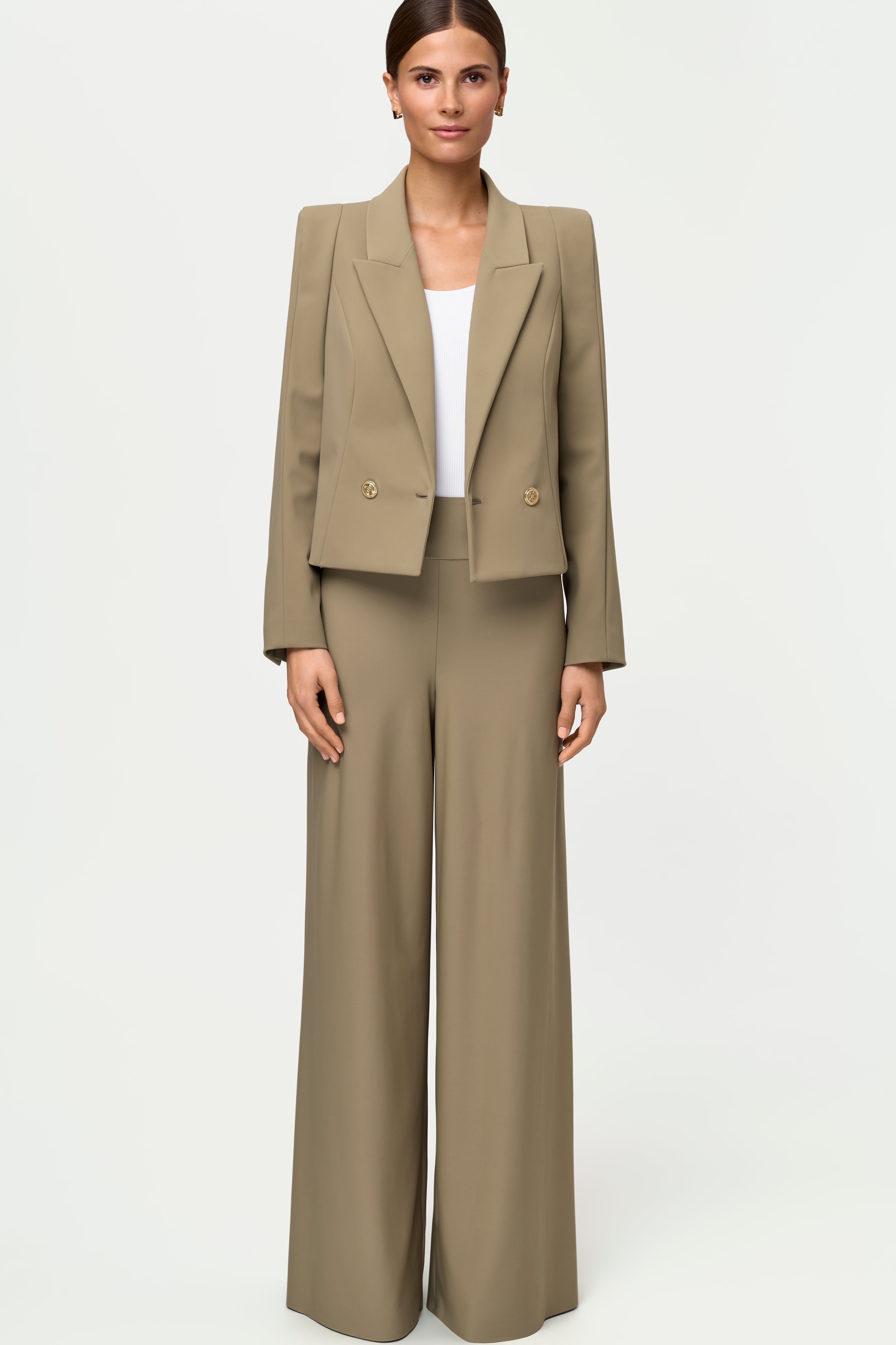 The TROINA Stretch Blazer offers a modern take on timeless tailoring in breathable Italian BOND FORTE fabric. Stretchy and comfortable, it shapes a confident silhouette with a sharp neckline, structured shoulders, and precise seams. Golden sun buttons, sleeve vents, and a stretch jacquard lining with hidden pocket add refined details. Wear it open for a relaxed vibe or closed for a sharp, tailored look. Pair it with the SINAM Pants oliva for a polished total look.